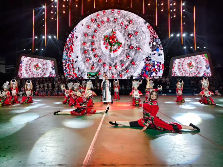 开幕式上,19支参赛队伍依次入场,各队精神饱满、士气高昂。随后,运动员与裁判员分别进行了庄严的集体宣誓。紧接着,一系列富有民族特色的文艺节目轮番上演:开场舞《苗家牛角杯》、歌伴舞《飞机飞到苗家寨》、舞蹈《鼓舞苗疆·盛世欢》以及《侗歌声声唱给党》等,点燃了全场的热情。鼓声激昂、歌声嘹亮、欢呼不断,彼此交融,共同奏响了一曲歌颂民族团结、乡村蓬勃发展的华彩乐章。