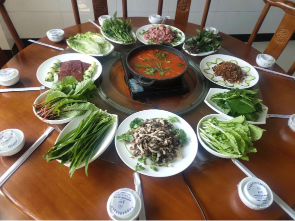 渣辣子腌制好后制成汤底,因为渣辣子在制作过程中加有糯米,所以制成的汤底香辣粘稠,这锅渣辣子煮出来的食材上往往挂满汤汁、更被衬托得酸辣爽滑,是一道开胃佳肴,渣辣子火锅常配以新鲜的牛肉、牛杂、白菜、豆腐等食材,制作简单,酸鲜开胃,香气迷人。
