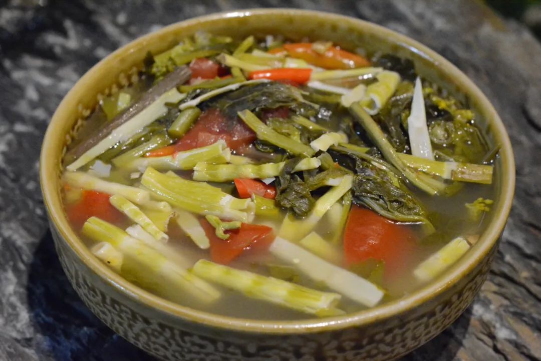 在苗族人的菜谱里,酸汤永远是主角,不管是鱼、猪脚、牛肉等肉类,还是蔬菜、豆类,蕨菜、竹笋,都喜欢用酸汤来煮,因为酸汤的口感和功效太神奇,只有读懂这一碗经过奇妙发酵的液体,才算是真正懂得黔东南的饮食文化。