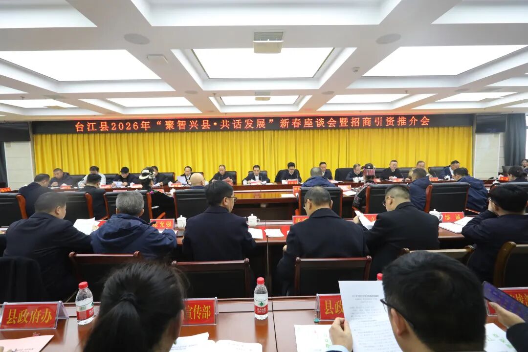 2月12日,台江县召开2026年“聚智兴县·共话发展”新春座谈会暨招商引资推介会。会议通报了全县经济社会发展情况,与会人员观看了台江县招商引资宣传片,听取了县智力支乡会工作视频汇报,并就推动台江县经济社会高质量发展建言献策。