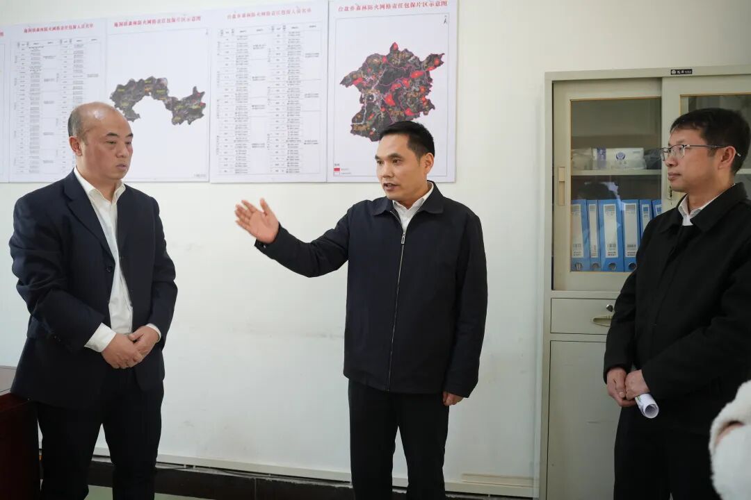 图为易贤在县林业局查看森林防火物资储备、应急保障等工作情况。