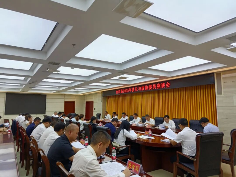 9月24日下午,台江县2025年县长与政协委员座谈会在县委党校二楼会议室召开。县委副书记、县长杨德昭出席会议并讲话,县政协党组书记、主席黄置民主持会议。县政协副主席刘朝勇、张允强、张博根、邰诚,以及县政协各专委(办)负责同志、部分政协委员、县直相关部门主要负责同志参加会议。