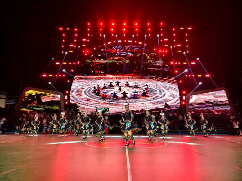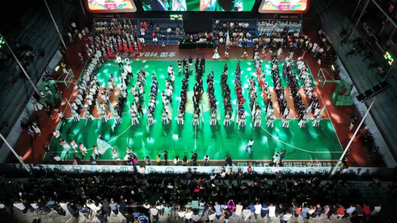开幕式上,19支参赛队伍依次入场,各队精神饱满、士气高昂。随后,运动员与裁判员分别进行了庄严的集体宣誓。紧接着,一系列富有民族特色的文艺节目轮番上演:开场舞《苗家牛角杯》、歌伴舞《飞机飞到苗家寨》、舞蹈《鼓舞苗疆·盛世欢》以及《侗歌声声唱给党》等,点燃了全场的热情。鼓声激昂、歌声嘹亮、欢呼不断,彼此交融,共同奏响了一曲歌颂民族团结、乡村蓬勃发展的华彩乐章。