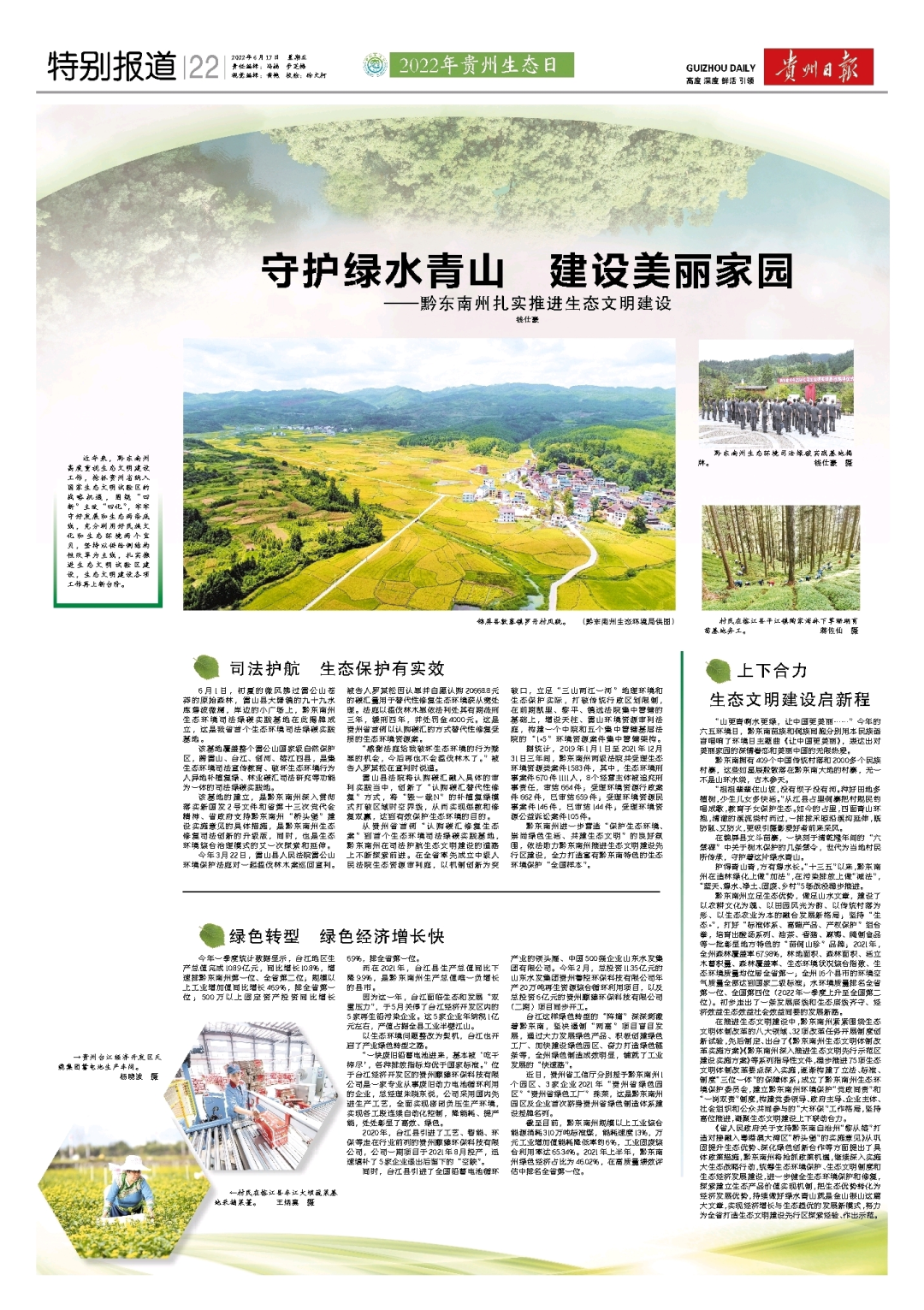 黔东南州进一步营造“保护生态环境、崇尚绿色生活、共建生态文明”的良好氛围,依法助力黔东南州推进生态文明建设先行区建设,全力打造富有黔东南特色的生态环境保护“全国样本”。